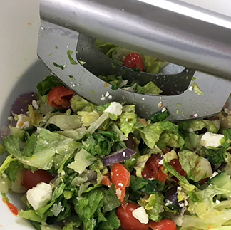 For those of you that love salads; especially chopped salads, this tool is for you! Simply add your fresh vegetables to a bowl and start rocking! You have fresh, chopped salad in seconds! Easy to clean! Simply rinse clean or pop into the dishwasher!